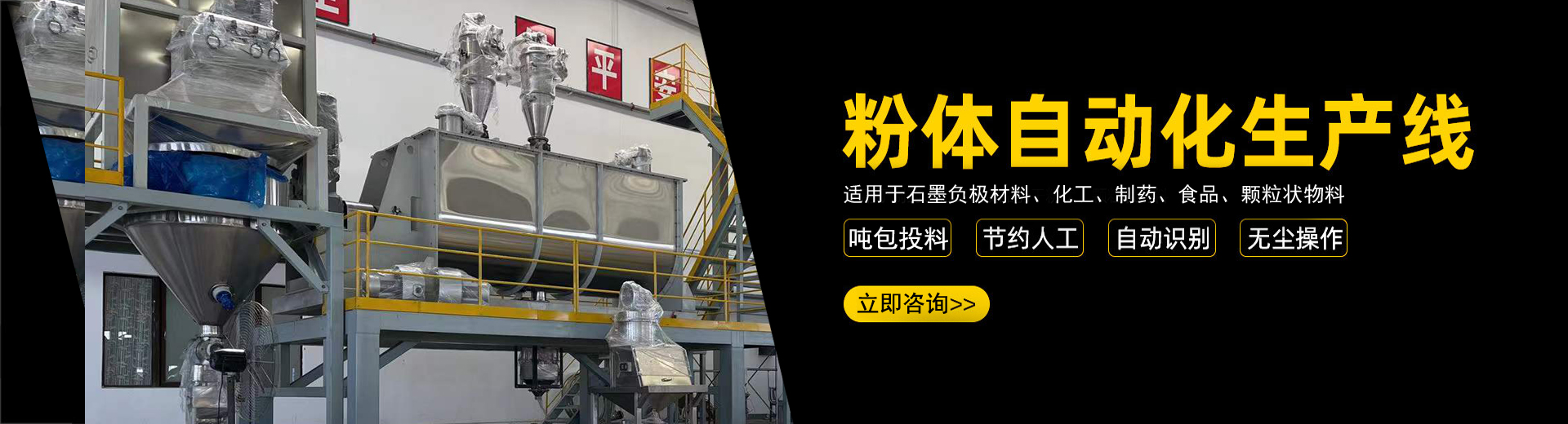 公司在制造混合設備和各類機械氣力輸送生產線的經驗沉積下,自主開發了全自動化生產線。實現了自動化拆垛、自動化輸送、自動化配料、自動化秤重混合、自動化篩分、自動化包裝、自動化碼垛一系列全自動化生產線...